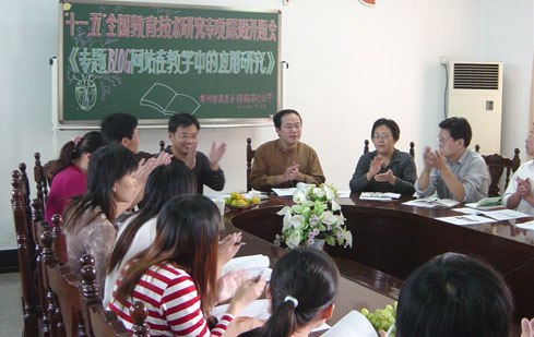 开题仪式上,区电教中心的沈主任、宋老师作了热情洋溢的讲话。宋老师首先对我校课题立项表示祝贺,同时他也指出,为了使这一“十一五”全国现代教育技术课题研究有名有实,提出了五点要求,要求我们进一步解读方案,分解目标,细化内容,计划引领,活动推进。沈主任在表达了他真诚的祝贺之后,指出我们的课题选题实在,研究内容有特点,预期成果有价值,课题方案理念创新,把师生共同成长、把师生发展放在首位,过程、交流、评价、表现同步,抓住了素质教育的要旨。最后,沈主任语重心长地希望我们能够加强学习,探讨前沿;不断完善计划,分解目标;及时表达与反思,创出研究成果特色与亮点。