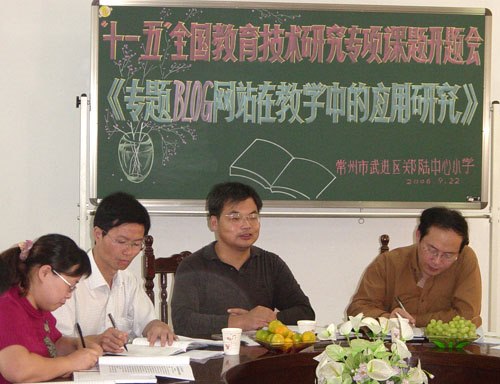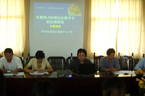 秋高气爽.丹桂飘香,9月22日,郑陆中心小学隆重举行了“十一五”全国现代教育技术研究专项课题《专题BLOG网站在教学中的应用研究》开题会。武进区电教中心的沈主任、宋老师以及全体课题组成员近30人参加了会议。