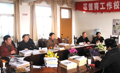 上午八点刚过,区教育局毛局长带队,组织科郑主任、教育科郑科长、眭科长等局领导以及横林实验小学的蒋校长参加的验收评估组领导、专家冒着冬日早晨的严寒就来到了我校。在会议室,他们首先听取了我校分管德育工作的汤校长作的“依托乡土资源,开展实践活动,构建学校德育工作校本化特色”的工作汇报;随后,领导们查阅了台帐资料,进行了学生问卷调查。最后,教育局领导对我校在争创特色学校过程中做的大量工作给予了充分肯定,对已经取得的成绩表示认可,并亲切地对我校的德育工作进行卓有有效的指导。