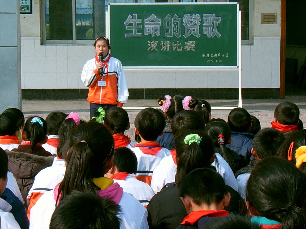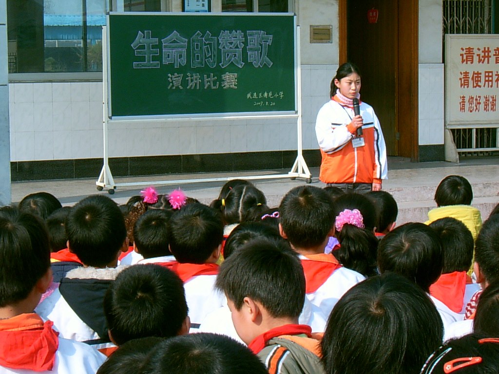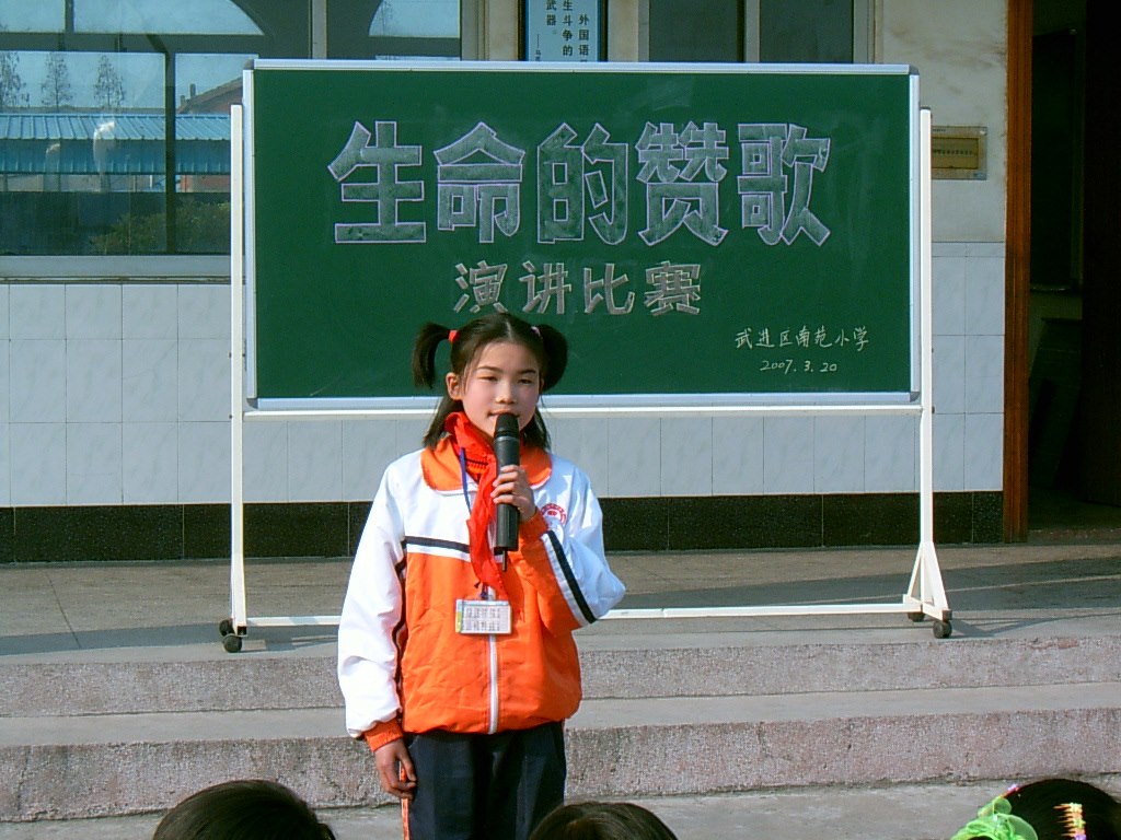 3月20日下午,阳光明媚,南苑小学全校师生聚集在操场上,聆听了学生的《生命的赞歌》演讲比赛。学生讲述了中国大地上的优秀人物的典型事例,结合自己畅谈了感受,热情的话语,洋溢着学生对优秀中华儿女的崇敬和爱戴。这次活动的开展,有力地促动了学生的灵魂,潜移默化地让学生接受了良好的思想熏陶。