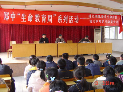 离开2007年中考还有不到一百天的时间,如何在这段时间内提高复习效率,确保中考再出好成绩,是摆在全体郑中师生面前的首要问题。为此,校行政结合“生命教育周”,组织召开了本次会议。