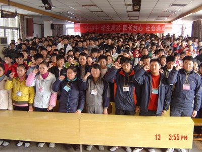 2007年3月13日下午班会课,郑陆初中召开“树立理想 提升生命价值”初三中考复习动员大会。