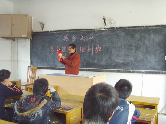 2008年3月10日下午,政教处和总务处对各班选出的义务消防员进行了培训,总务处倪建平副主任主讲。倪主任先讲述了掌握消防知识的重要意义,并从法律的角度对消防员的工作职责和工作的重要性作了宣讲。接着,他重点对如何使用灭火器,作了耐心细致的说明和演示。之后全体义务消防员到操场上进行了实战演练。通过培训,同学们学到了许多消防知识,特别是如何应对突发火灾、如何解救生命财产,如何自救等有了更多的更好的方法和策略,提高了灭火的能力,也提高了自身的生存技能。