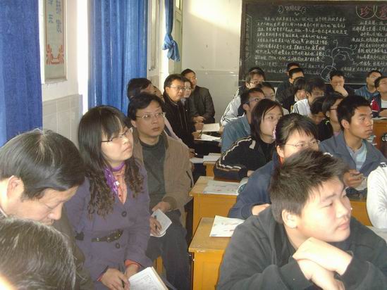活动第一阶段:听课。由郑陆初中邵一峰、陶翔两位青年教师为参加活动的老师开了两节初三复习研究课。两位青年教师通过自备、教研组集体备课、试上、修改等过程,精心准备,并在网络、学校电教室等收集资料,制作多媒体课件。