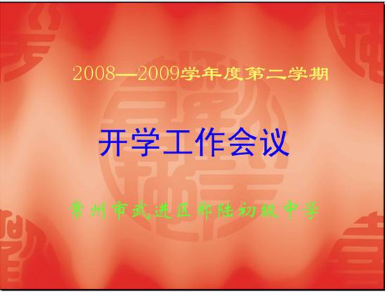 09年2月5上午8时,武进郑陆初级中学校门口,鞭炮阵阵,热闹非凡。今天是该校全体教工“回家”的日子!带着新春的欢悦,大家早早来到学校,互道祝福,互诉心事!上午8点半,全校教工准时在三楼会议室召开了2008—2009学年度第二学期开学工作会议。