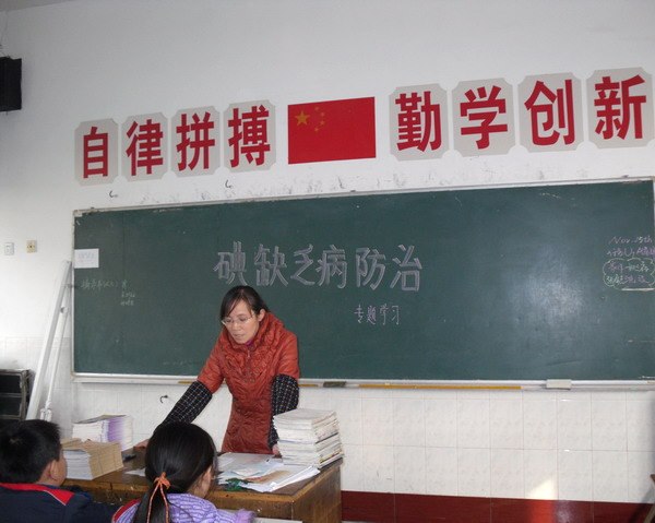 2009年11月25日下午第二节课,郑陆中心小学五年级的全体学生端坐在教室里,认真聆听健康老师所做的“碘缺乏病防治知识专题讲座”,从而知道了什么是碘,什么是碘缺乏病,知道了碘缺乏会出现的主要危害,同时也了解了补碘的关键期,以及补碘的最好措施等等。老师们讲得细致认真,学生们学得专心投入,为学校卫生保健工作的进一步落实与提高奠定了扎实的基础。据悉,本周五,学校还将组织学生参加健康知识考查呢!“学健康知识,做阳光少儿”,让我们一起努力吧!