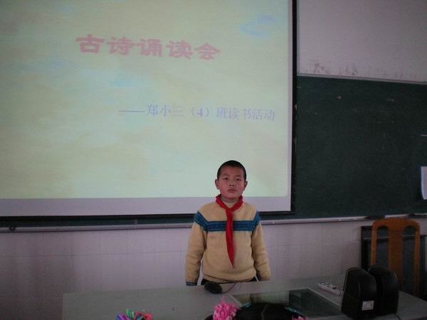 活动期间,各班按照学校提供的参考,自行组织了“我与阅读同行”的主体队会。队会内容丰富多彩,有沈石溪动物小说——《最后一头战象》的导读课,有《兔子坡》的阅读交流会,有优秀古诗文积累对抗赛,有古典诗歌朗诵会,有传奇故事大比拼……孩子们在活动中,不仅学到了阅读整本书的方法,品尝了分享阅读的快乐,还重温了许多经典诗歌,对阅读经典产生向往之情,而且通过讲述故事等活动,激发了表演欲望,提高了表述能力。