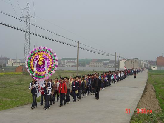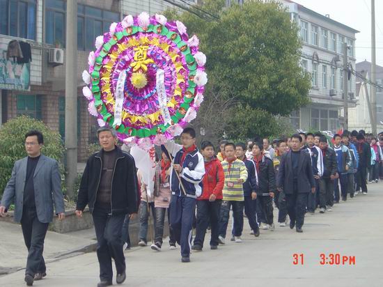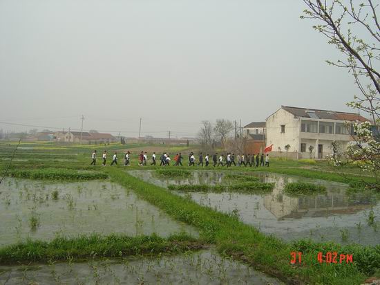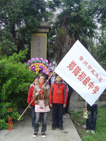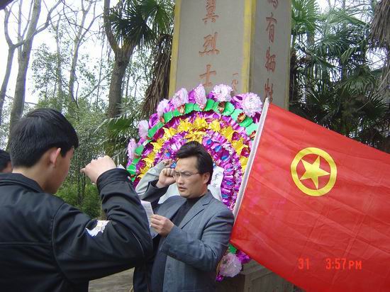 在纪念碑前,首先向烈士纪念碑敬献了花圈。各班为单位向烈士鞠躬致敬,并绕墓一周。