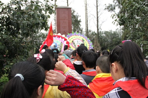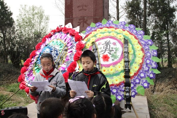 “春风杨柳青,最思雨‘清明’,我做一朵小百花,烈士墓前祭忠魂……” 为积极响应区教育局提出的低碳教育的理念,充分利用好我校爱国主义教育基地的德育资源,节约活动成本,提高德育实效,郑陆中心小学今年的清明祭扫开展了一系列别开生面的活动。