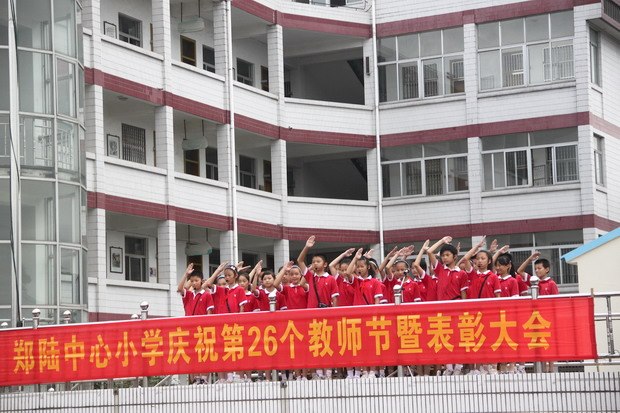 活动在主持人张惠芬校长衷心的祝愿声中拉开了序幕,首先是六年级少先队员为教师节献花献词,他们在这特殊的节日里,用最美的童声道出了对敬爱的老师的感激之情;随后钱国云校长致辞,他热情洋溢地赞赏了郑小的每一位教师,祝福大家节日快乐,同时又殷切地希望教师们能再接再厉,不断创造新的辉煌;接着大会表彰了在2009——2010学年度中表现突出的10位教师,优秀教师代表牟晨娣老师作了发言。最后郑陆镇党委王助理讲话,他说郑陆中心小学虽然办学条件比较艰苦,但是全体教师在钱国云校长的领导下,在各项活动中取得了优异的成绩,一张张奖牌,一名名学科带头人、教坛能手和中学高级教师的脱颖而出,无不说明了这一点,他代表镇政府表示衷心的祝贺和真诚的祝愿,愿教师们节日快乐,身体健康,事业更红火!