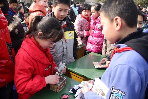 活动这天,“值班小经理”、“小小会计师”、“小小收银员”、“小小导购员”各司其职,有条不紊地投入到义卖活动中。其他队员也以极大的热情,为“春苗基金”义卖活动贡献自己的爱心。很多老师也被队员们的热情感染,加入了“淘宝”的行列。