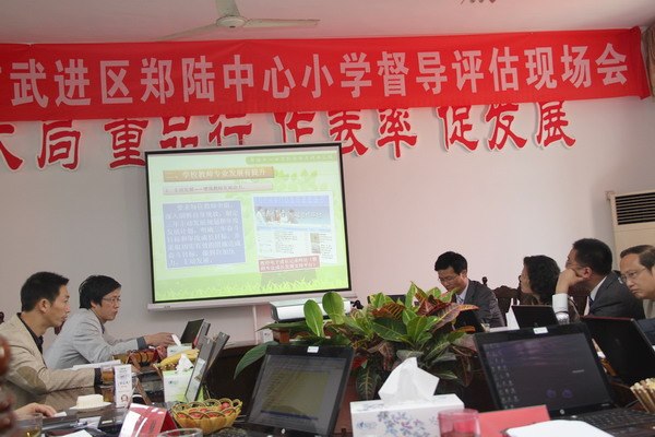 在为期两天紧张、有序、高效的评估考核中,督评组各专家认真聆听了钱国云校长所做的《重视内涵发展 凸现学校特色 提升办学品位》的工作报告,并通过校长答辩进行了面对面的交流与沟通。随后,督评组通过看、听、评、议、问等方式,分别进行了升旗仪式、大课间活动、广播操、学生社团训练的观摩、校容校貌的察看以及覆盖小学各学科的12节课堂教学的观摩,共查阅了16本教师备课本、16本听课笔记、42本学生作业本,同时对36位教师、58位学生、50位家长进行了问卷调查,访谈了20名教师、18名学生,对郑陆中心小学四年来的教育教学工作进行了全面检阅。