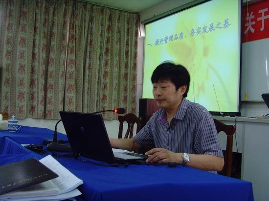 会议由郑国强主任主持。九所学校的领导分别就三年主动发展规划中的班子建设、教师队伍建设、课程改革与实施、德育工作、教育科研、校园文化建设、主动发展项目的实施等学校管理的各个方面,采用PPT的形式作了汇报交流,突出了各校的办学亮点和特色,反思了三年办学历程中存在的问题与努力的方向。