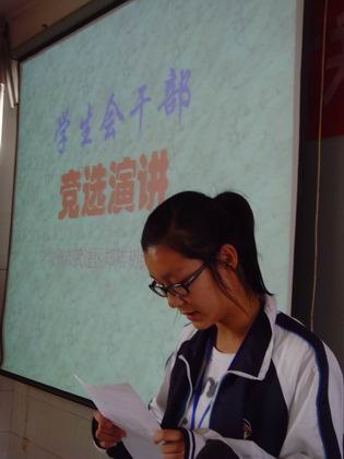 经过一段时间的准备,我校学生会换届选举工作如期举行,经过各班的初选,全校二十多名参选者按年级分成三个小组参加竞选演讲,评委由部分行政人员及各年级组长担任。选手们从自我介绍、竞选职务及自身优势特长、竞选口号、施政纲领和实施细则及如何面对落选等五几个方面进行了阐述。从他们极富感染力的演讲中可以看出,他们对这次竞选非常的重视,许多选手对自己竞选的职位有一种“势在必得”的气势。仅仅从“自我介绍”这一板块中就可以看出他们有着极强的竞争意识,他们有的是从个人的成长经历来勾勒出对自己快速成长的骄傲;有的是着重强调自己有着多年的“班长”经历来隆重推介自己;还有的选手是从自己的性格优势入手以及自己曾经取得的成功经验来介绍自己……,各种介绍方式让评委们大为惊叹!在介绍“施政纲领和实施细则”及“如何面对落选”两个栏目时,选手们更是表现出了很好的精神风貌和优秀的演讲才能,他们都从“责任心”和“管理细节”方面进行了阐述,体现了他们以校为荣,勇于担当的精神,他们在演讲中处处体现出积极向上的郑中学生风采。对于如何面对落选这个问题,他们也表现出了超过他们实际年龄的成熟心态和健康的竞选心理。这是一次成功的选举活动,调动了学生参预学校管理的积极性,激发了学生的潜能,丰富了学生的学校生活,为学生们更加健康的成长搭建了展示自我的“舞台”。