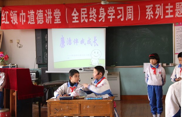 今天,队歌声声,特别嘹亮;今天,队员们的笑容格外灿烂;今天,队员们胸前的红领巾分外鲜艳。“红领巾道德讲堂”系列活动之三“说礼讲信”—— 四年级中队主题活动轰轰烈烈地开展起来了。