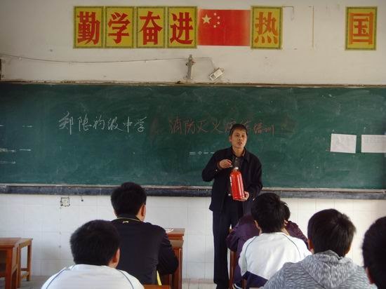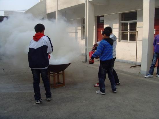 2011年11月15日下午,学校总务处对各班选出的义务消防员再次进行灭火培训,总务处倪建平副主任主讲。倪主任重点对如何使用灭火器,作了耐心细致的说明和演示,之后义务消防员到模拟灭火场地开始实战演练。