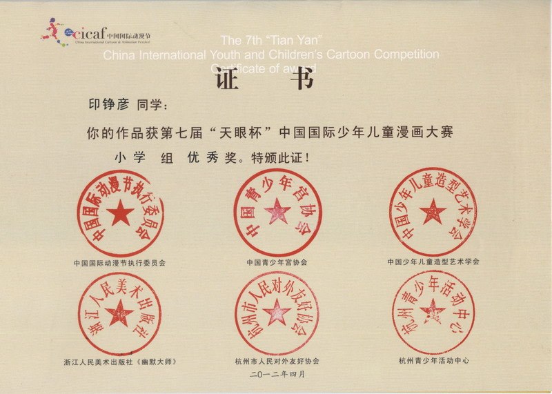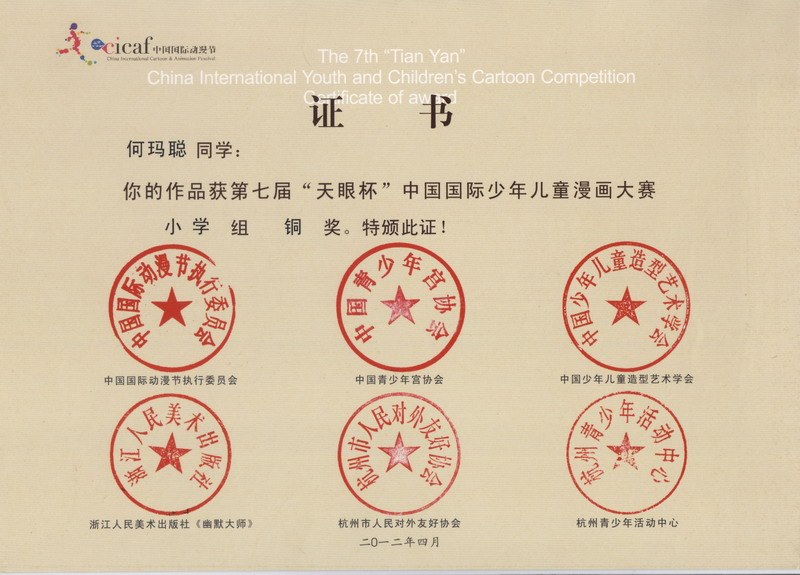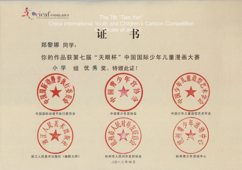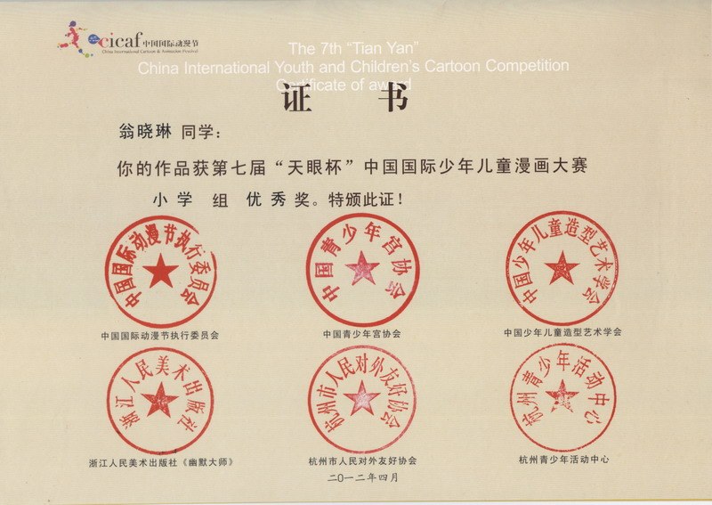 我校在第七届“天眼杯”中国国际少年儿童漫画大赛中喜获佳绩