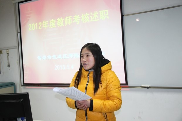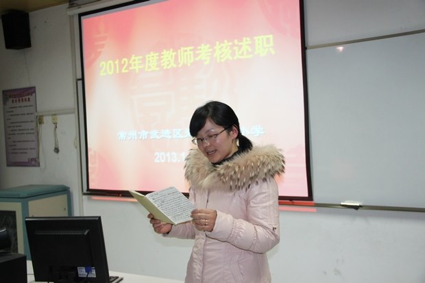 元月4日中午,首先各级部组长召集老师分别举行述职汇报活动,通过民主投票选举了级组内拟考核优秀的候选人。下午四点,全体教师集中在三楼网络教室听取各级组推选出的15位教师代表的述职汇报。在述职会上,老师们从德、能、勤、绩、廉等方面回顾一年来的工作情况和所取得的成绩,畅谈自己的感受和宝贵经验,对工作中还未能做得完美的地方也作了总结和反思,并期待在今后的工作中能做得尽善尽美。会上,各教师的述职精彩纷呈,她们的发言妙语连珠,事迹感人至深,赢得大家阵阵掌声。