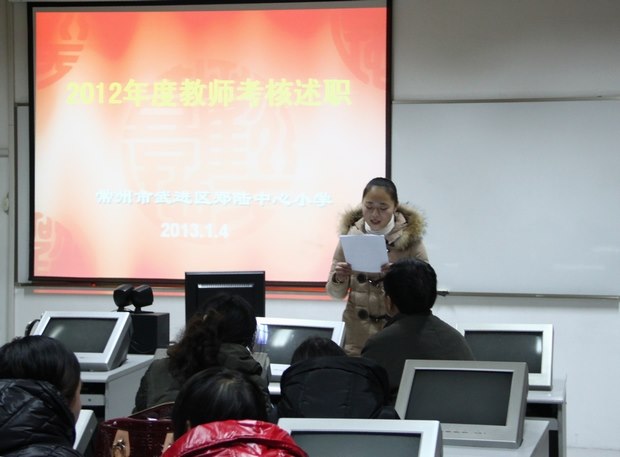 根据区教育局文件精神,郑陆中心小学在近日开展了2012年度教师考核述职活动。元旦前,钱国云校长就在教师大会上向每位教师传达了常州市武进区教育局武教人〔2012〕26号文件《关于做好2012年全区中小学教职工年度考核工作的通知》精神,详细介绍了本年度教师考核的范围和对象、组织领导、考核内容、等次、标准和程序、考核结果的使用以及学校考核时间安排及相关要求,要求各位教师首先做好个人年度总结,由各年级组长组织级组教师进行个人述职汇报,推荐出年级组拟考核优秀的候选人参加学校述职大会。
