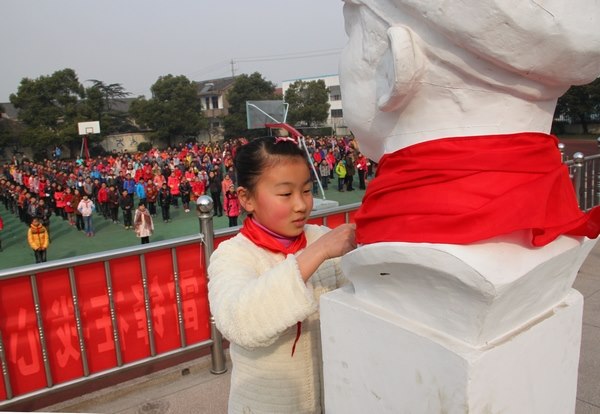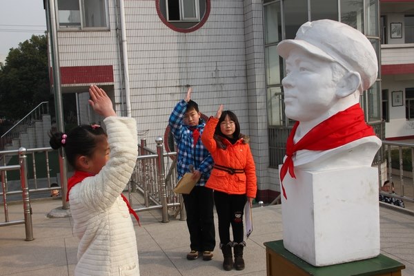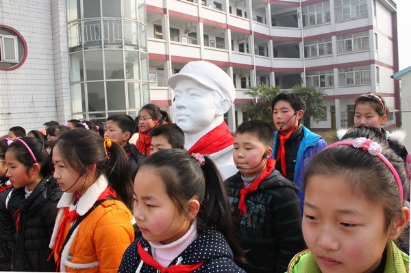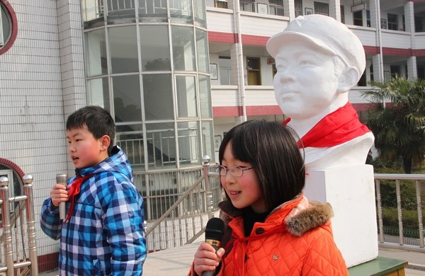 在《学习雷锋好榜样》的歌声中,队员们把学校队室珍藏十余年的那尊雷锋塑像请上了司令台。四年级的队员代表满怀崇敬地为雷锋像戴上鲜艳的红领巾,全体少先队员在雷锋像前高举右手,向雷锋叔叔献上他们最高的敬意——队礼。五年级队员代表以声情并茂的诗歌朗诵,勾起了队员们对雷锋叔叔无尽的怀念;六年级的队员代表则为小队员们介绍了雷锋叔叔的事迹,并希望大家以爱心将雷锋精神延续。在邱金兰副校长的宣布声中,生命教育和读书节活动拉开了帷幕。