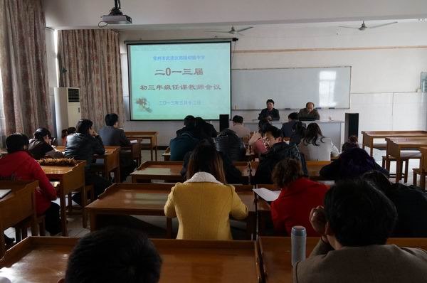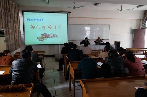 为提高初三教师的教科研水平,加强教学研讨风气,分析本届初三学生的学情,落实教育局减负增效精神,共同探讨提高本届初三学生整体素质的策略,经校行政会议讨论决定,学校于3月15日在多媒体教室召开了初三全体任课教师会议。