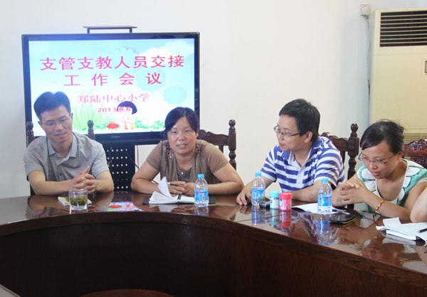 2013年8月6日上午,在郑陆中心小学的会议室里,举行了支管支教人员交接工作会议。参加的同志有来自对口学校郑陆镇黄天荡新市民子弟学校负责人李校长等一行两人,中心校支管黄丽英校长,支教羌晓峰和孙红两位老师,郑小全体行政班子参加了会议,会议由钱国云校长主持。