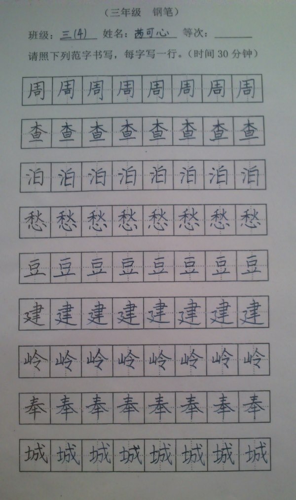 要写一手好字,不可能一蹴而就,而是功在平时,日积月累。从本学期开始,我校改进措施,狠抓写字课,要求班主任和副班主任每天坚持到岗,一起对学生进行辅导,将写字训练真正落到实处,将教师的指导落到实处,让学生的练习落到实处!