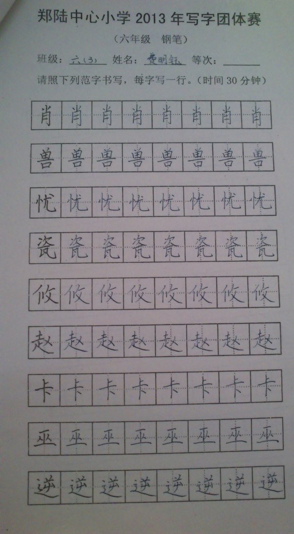 随着全国汉字听写大赛如火如荼的展开,郑陆中心小学汉字书写比赛也拉开了序幕。写一手好字,是学生语文素养一个极其重要的方面。语文课程标准修订稿中也强调:“语文课要每天落实十分钟的写字训练。”为了达成这个目标,这几年,武进区教研室通过多种活动研究实践,彰显对写字教学的重视,而我校在这方面也进行了不断的努力与探索,希望每个学生都能习得一手好字。