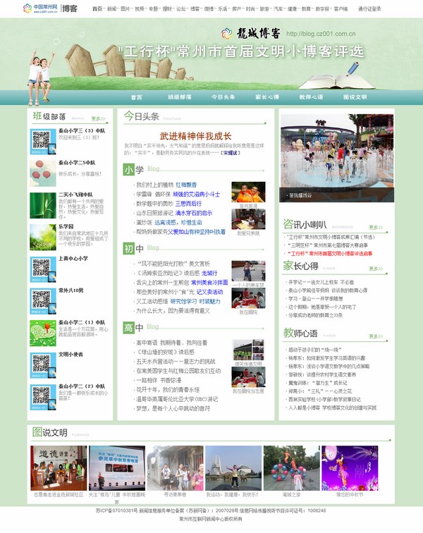 这次“工行杯”常州市首届文明小博客评选活动,由常州市文明办、常州市教育局主办,常州市互联网新闻中心(中国常州网)、常州市博客文化研究会承办。从6月20日开始至9月10日结束,共有21个学校的122个班级博客圈、2600名学生参与本次活动。在本次文明小博客的评选活动中,共收到7200多篇文明内容作品,让我们分享了常州中小学生的爱心、礼仪、道德、悦读、朝气、担当等文明内容。同时,在引导未成年人养成良好上网用网习惯,在创建文明城市的过程中,文明小博客积极传播了社会正能量。
