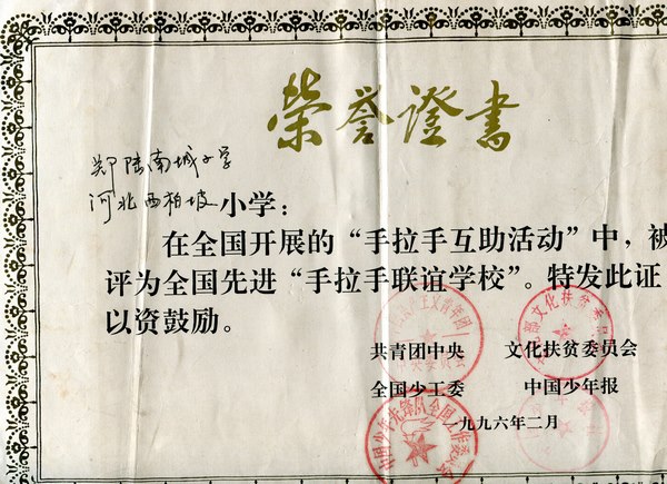武进区南苑小学(合并前为武进区南城小学)与西柏坡希望小学的“手拉手”历史悠久,1990年,原武进区南城小学在老校长