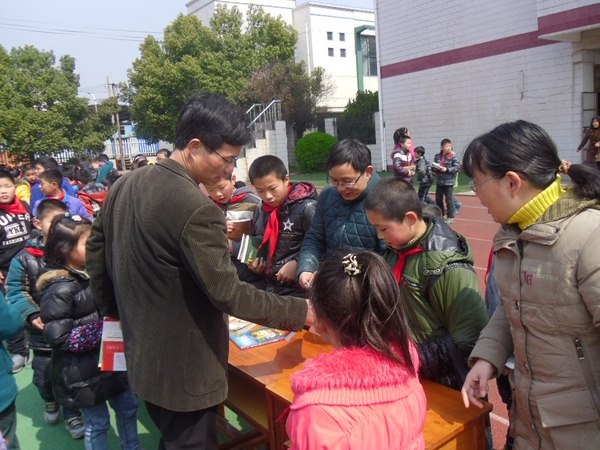暖暖的春日,明媚的阳光,热闹的操场,孩子们欢乐的笑声,叫卖声、惊叹声、吆喝声、还有轻快的音乐声……交织成一首春的交响乐。这里是 “爱心义卖”现场,是郑小孩子们欢乐的淘宝街!这是生命教育周的又一活动——“爱心字典 点亮人生”爱心义卖活动。全体队员们把自己的书、玩具和学习用品带到学校,明码标价出售。因为是义卖,队员们的购买能力有限,所以一本二、三十元的书最多只卖5元,这使得孩子们的热情空前地高涨,也吸引了老师们的脚步,连校长都忙着穿梭于活动中心,充分感受着孩子们的快乐。义卖活动在欢快的音乐声中进行,孩子们在操场上自由地穿梭,或三五成群交流收获,或三三两两组合购物,或独自一人欣赏美文……
