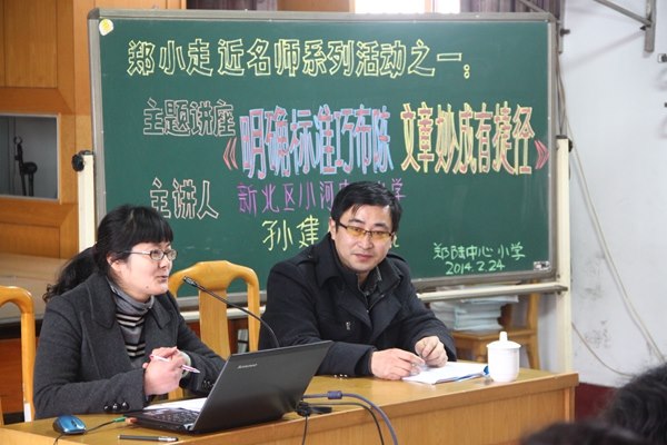 孙主任从“澄清两个误区、明确论文标准、精选切入视角、巧架文章结构、落实行动策略”五个方面侃侃而谈,他用自身的经历,用生动的案例,和郑小教师分享了他撰写论文背后的故事,如果加以概括一下,可以用几句诗来阐明:一、“天机云锦用在我,剪裁妙处非刀尺”,只有融会贯通,写来才能得心应手;二、“花开堪折直须折,莫待无花空折枝”,当有了好的想法之后,赶紧动笔;三、“汝果欲学诗,功夫在诗外”,要想写出一篇好的论文,学习、阅读是很重要的;四、“纸上得来终觉浅,绝知此事要躬行”,从书上读到的东西毕竟是别人思考的产物,不带着我们自己的印记,所以,写好文章,关键是要实践。