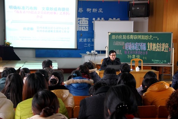 为了解答教师们心中的疑问,近日,郑陆中心小学有幸邀请到新北区小河中心小学的孙建顺主任来为大家做“明确标准巧布阵,文章妙成有捷径”的专题讲座。