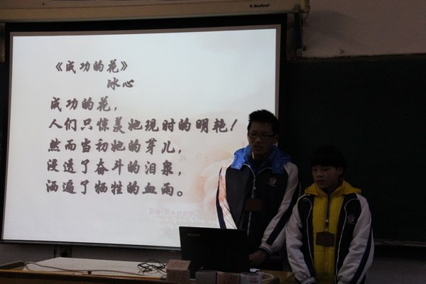 在歌曲《水手》激动人心的歌声中,郑陆初中八(4)班拉开了主题班会《仰望星空,脚踏实地》的序幕。活动中,学生们或朗诵或表演,或讨论或讲故事,通过各种形式明确树立理想的重要性,并认识到理想的实现需要付出艰辛的努力。正如冰心女士所写“成功的花,人们只惊羡她现时的明艳!然而当初她的芽儿,浸透了奋斗的泪泉,洒遍了牺牲的血雨。”