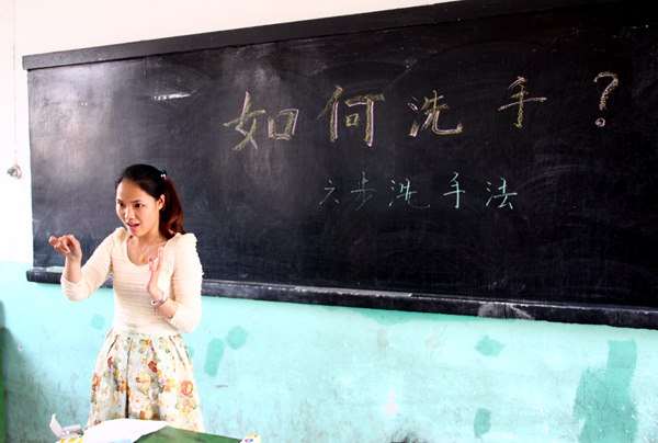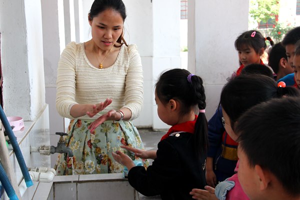 你会正确的洗手吗?水池旁,志愿者正在给一年级的同学示范讲解“六步洗手法”,学会正确的洗手方法和姿势,让细菌远离我们每一个人。新市民小学生大部分是留守儿童,由于父母顾及孩子的学习和生活相对较少,培养学生良好的卫生习惯,能及时防范流行病入侵校园。