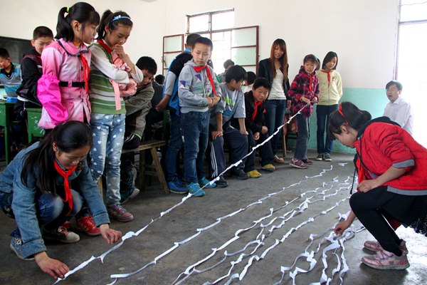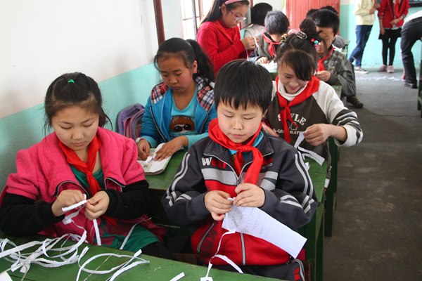 在五1班教室,“人有多大胆,纸就有多长”科学课正在进行,同学们聚精会神,小心而快速地撕扯着手中的纸,有的看来有点紧张,有的目不斜视,手中一刻不停,……短短的几分钟,同学们用灵巧的双手完成了手撕纸条的制作,一张小小的A4废纸,在同学们的手下变成了一根根细细长长的纸条。通过活动,不仅锻炼了同学们手、眼、脑协调并用的能力,而且培养了他们细心、专心、耐心的良好品质和行为习惯。