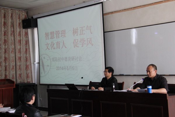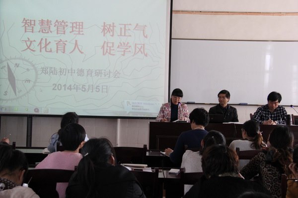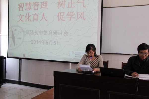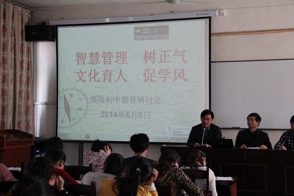 5月5号,郑陆初中在校多媒体教室举行了主题为“智慧管理 树正气,文化育人 促学风”的德育工作研讨会,会议由主管德育工作的陈光华校长主持。会议开始,陈校长就本次会议的目的和主要议程作了简要的说明。