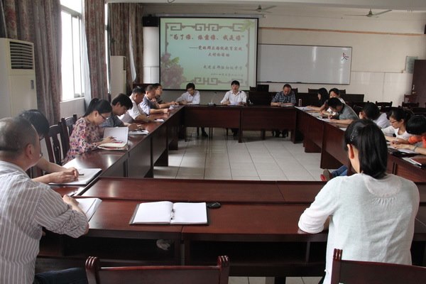 5月21日,阳光明媚。郑陆初中多媒体教室,气氛热烈,“为了谁,依靠谁,我是谁”大讨论活动正在隆重举行。郑陆初中全体行政人员、党员出席了会议。