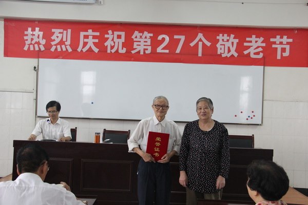 同时,校党支部书记钱朝平同志、陈光华副校长、陆秋娥副镇长为几对“银婚、金婚”的老教师夫妇颁发了证书,并合影留念。对所有的离退休老教师们送上了祝福,各位老前辈喜笑颜开,感慨万分,幸福之情溢于言表。