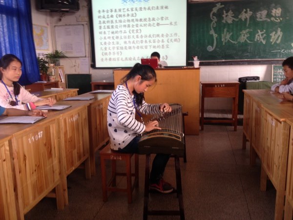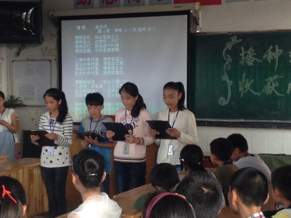 四位同学紧接着上台表演了诗朗诵——流沙河的《理想》。“理想如珍珠,一颗连着一颗, 贯古今,串未来,莹莹光无尽……”这些诗句,催人奋发。