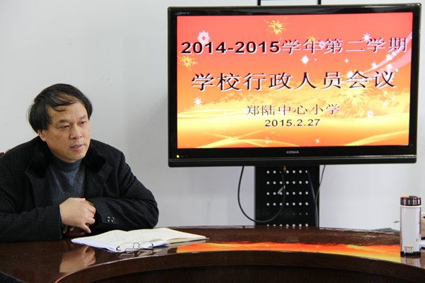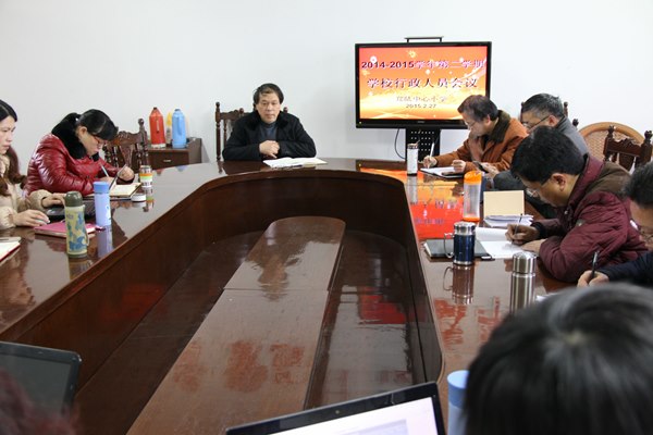 姚校长首先向全体中层干部拜晚年,带来农历新年诚挚祝福。姚校长向全体同志传达了省教育厅视频会议、区教育局新学期工作会议精神。新学期坚持稳中求进工作总基调,主动适应经济发展新常态,全面深化综合改革,全面推进依法治教,着力促进教育公平、着力提高教育质量等。