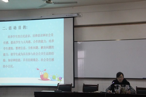 接着政教处毛刘红老师侧重对本学期公民教育实践活动提出相关要求。他先把十二个班级分成五大组,并确定各组的负责人,要求各组尽快确定所研究的问题,利用节假日制定活动方案并能落实到具体的行动中。他希望大家能积极参与到这一活动中来,积极关注与公民密切相关的公共问题和公共政策。通过本次活动,能树立学生正确的公民意识,提高学生对国家和社会的高度责任感和使命感。同时,他希望本学期学校的公民教育实践活动能创出特色,创出实效。