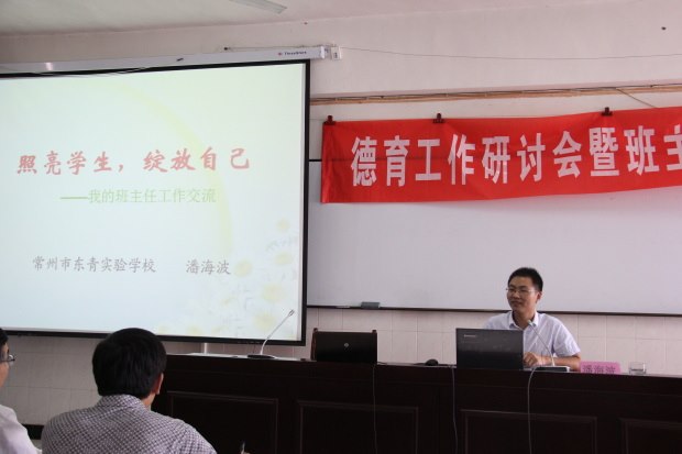 在潘老师的精彩演讲中,与会老师们聚精会神,脸上不时散发出由衷笑意。大家都获益匪浅。在这些班级生活的小小事件里,我们看到了潘老师的一颗赤诚之心。正如潘老师所说:潘老师就是这样的一位班主任,把他自己融化在我们这个由48个人组成的大家庭中!敬爱的班主任,他从未在别人面前炫耀过,但那盛开的桃李,就是对他最高的评价!