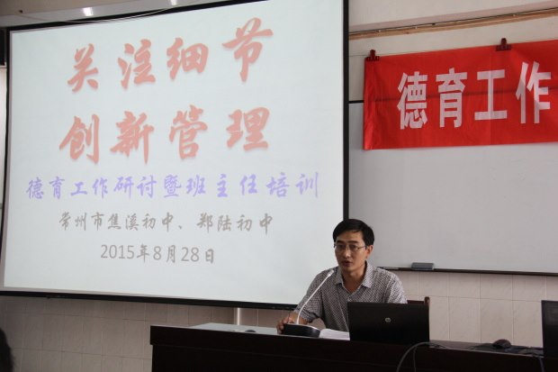 灿烂的8月末,郑中携着夏日的热情开展了班主任培训活动。8月28日下午一点半,郑陆初中和焦溪初中的班主任、校行政及其他任课老师参加了此次活动。在希冀与渴求中,研讨活动徐徐展开。此次活动的内容有:常州市东青实验学校的潘海波老师演讲《照亮学生,绽放自己》和常州市武进区刘海粟小学的王晓波老师讲诉《把梦想变成一生的坚守》。