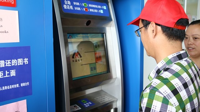 最后,郑陆图书馆蒋群馆长带领郑陆中心小学义工队成员参观智能图书馆,现场演示了智能化自助的借书、还书、查询、续借等功能,郑陆中心小学的教师义工们整理书籍,熟悉环境,特别对爱心书籍捐赠漂流的实施流程进行了关注并表示赞赏。