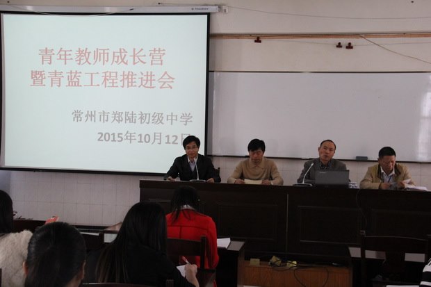 为了使青年教师脱颖而出,早日成才,逐渐锻造他们向骨干、名师型教师方向发展,促进年轻教师快速、健康成长,促进我校教师队伍专业化的建设,充分发挥优秀教师的传帮带作用,发挥“青蓝工程”的育人功能,并建立新型的“师徒”关系,促进他们互动,共同提高,以打造一支高素质的教师队伍,郑陆初中于2015年10月12日在多媒体教室召开了“青年教师成长营暨青蓝工程”推进会,会议由陈光华副校长主持。