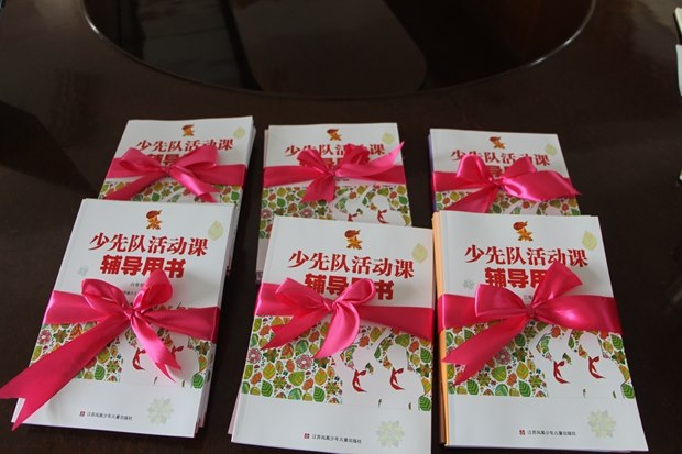 厚积而后薄发。郑小的班主任团队中有很多像吴老师这样默默耕耘的优秀教师,其中的一些由于年龄等问题离开了班主任岗位,却一直在以自己的言传和身教影响着新一批班主任,传承着郑小严谨、尽责、创新的班主任文化。今天正值建队纪念日,几位资深班主任现场向新班主任赠送了一份特殊的礼物——《省编少先队活动课辅导用书》,以此勉励新班主任上好队课,当一名研究型的班主任。这也标志着,郑陆中心小学少先队活动课教研组正式成立。