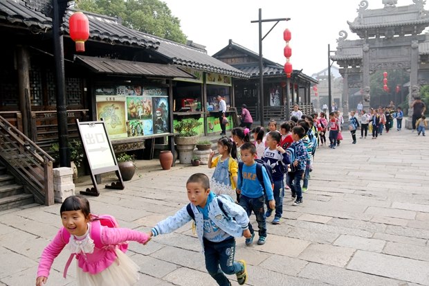 迈过气势雄浑的淹城春秋乐园青铜艺术大门后,来到一处飘散着百世旷古气息的文化写意区,便是诸子百家园。诸子百家园以中华古文为背景,通过多种手法诠释了春秋战国时期最具代表性的流派,展现了诸子百家的文化符号。整个诸子百家园由儒、道、阴阳、法、名、墨、杂、农、小说、纵横、兵、医等“春秋十二大家”组成,各个区域的造景形象逼真,充分体现了春秋时期百家争鸣的繁荣景象。尤其是其中的儒家景区,孔子像依山而建,形态逼真。山上结合石雕与文字表述孔子一生的经历。地面上则采用古书竹卷的形式进行布局,刻论语于其上,72贤人弟子坐落于此,再现孔子“杏林授徒”的春风和煦景象。