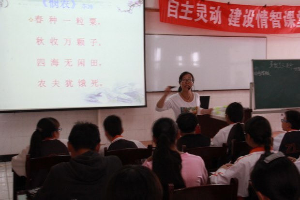 9月26日下午,郑陆初中多媒体教室座无虚席。陆 群老师正在执教情智语文公开课《多收了三五斗》。郑陆初中全体教师参加了这次教研活动。作为常州市初中语文课程基地,学校一向重视情智语文课程建设。本次活动,是学校开展的又一次情智语文公开教学研讨活动。