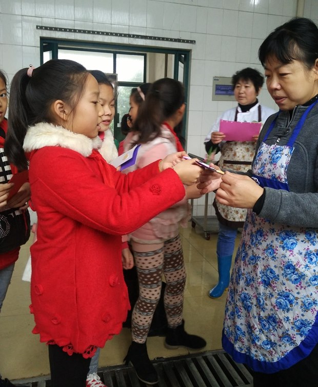 感恩季系列活动历时一个月,从最初的感恩季启动仪式暨各中队抽取感恩任务开始,全校的少先队员们走进社区、城管中队、银行、消防中队等,或送上自制的贺卡,或捧上一束鲜花,或捧上一支滋润的护手霜,或帮助食堂的工作人员收拾碗筷……哪里有奉献,哪里就有少先队员感恩的身影。孩子们用他们自己的方式,感谢这些默默付出的人们,用自己的实际行动谱写了一曲曲感恩之歌。
